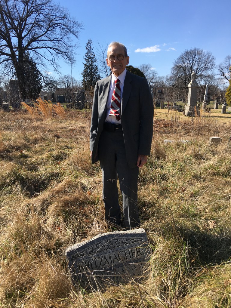Pictured at the grave of his grandmother & grandfather Anna and August Kritzmacher, Austin first visited WC in 1932 and has continued visiting for the past 85 years. Austin has other family members in WC and also a vivid detailed memory of his visits over the years.