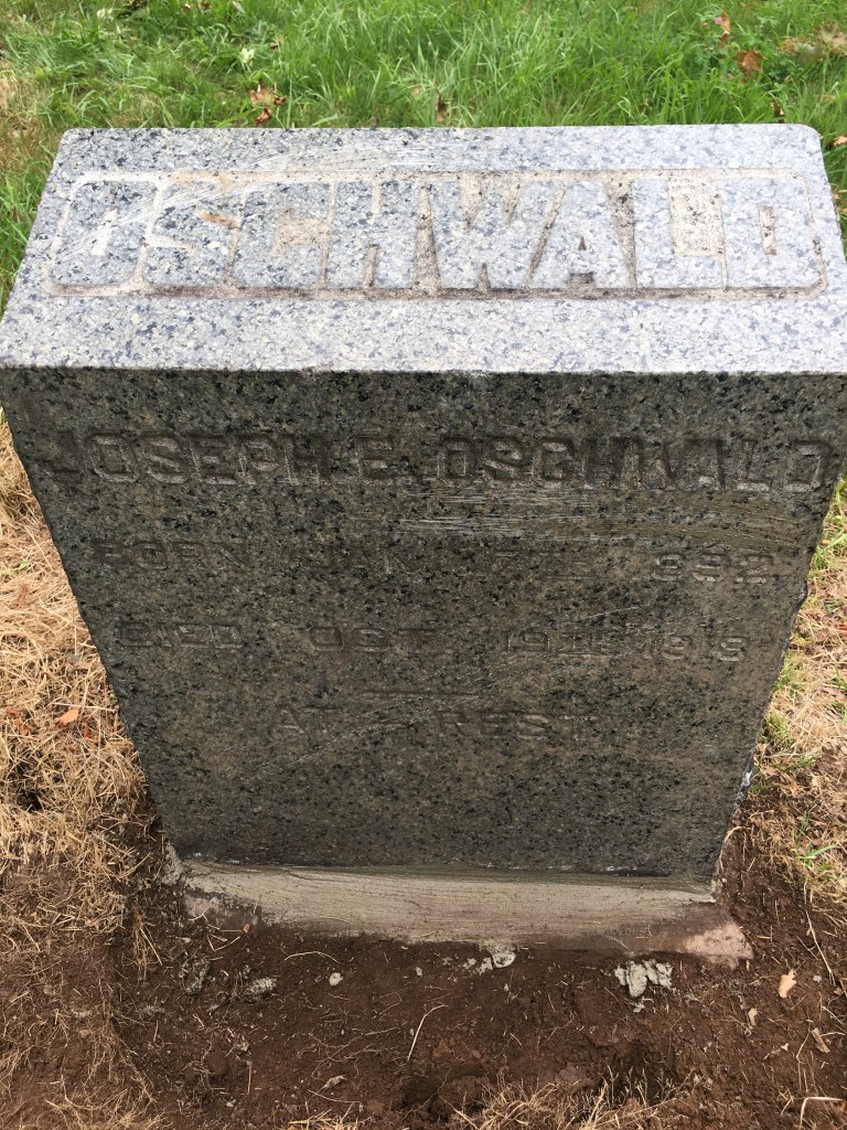 Over three days volunteers reset 16 fallen headstones at the Northern end of Section 1 facing Cypress Avenue. The stones were up righted, cleaned and cemented to the base or existing foundation. Many of these stones have been lying face down for many years and while it will take some time, mother nature will eventually wash these stones clean. The volunteers included Wes Shelton (who has family buried in WC) and a group of boy scouts under the supervision of scoutmaster Patti Poland. Great work everyone.