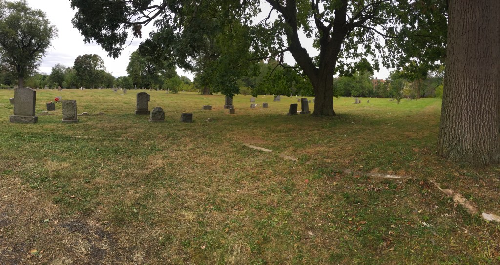 A panoramic view in two photos looking in from the South 10th Street Gate after the grass was cut in September.
