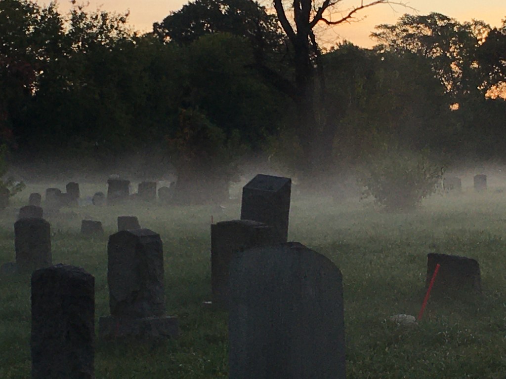 Morning Fog Greeted yesterday morning by fog layering the cemetery then being burned off as the sun rose. Share this: Click to email a link to a friend (Opens in new window) Email Click to print (Opens in new window) Print TweetLike Loading...