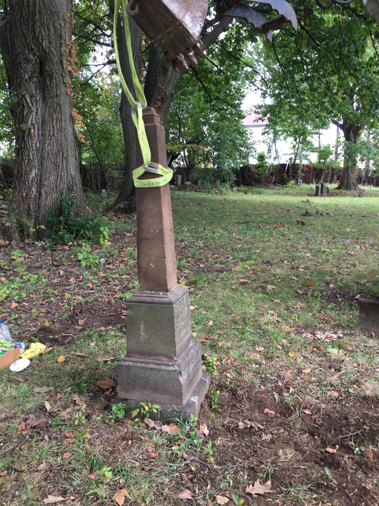 Located in Section 1 Row 6 graves 47 and 48 this old monument, engraved in German, was found knocked down and in four pieces. With the foundation still intact the remaining pieces were reset and secured in place. The below translation is provided by Mary Lish.