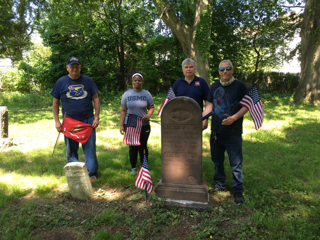 Posting flags in honor and remembrance of Veteran’s for Memorial Day 2021 at Woodland Cemetery. Pictured (l to r) are: Wesley Shelton who served in the Air Force stationed in Alaska and is committed to remember veterans; Erica Diggs posts flags in tribute to marine veterans motivated by her parents, both former marines: Next are members of the Sons of The American Legion Squadron #344 Rockaway Township Michael Woomer and Sean Hogan (r). Placing flags at veteran headstones for Memorial Day at Woodland Cemetery is a tradition Michael started originally with his wife Fay some 20 years ago. Michael is also past camp commander of Phillip Kearny Camp #20 Sons of Union Veterans of The Civil War. Thank you everyone for your work.