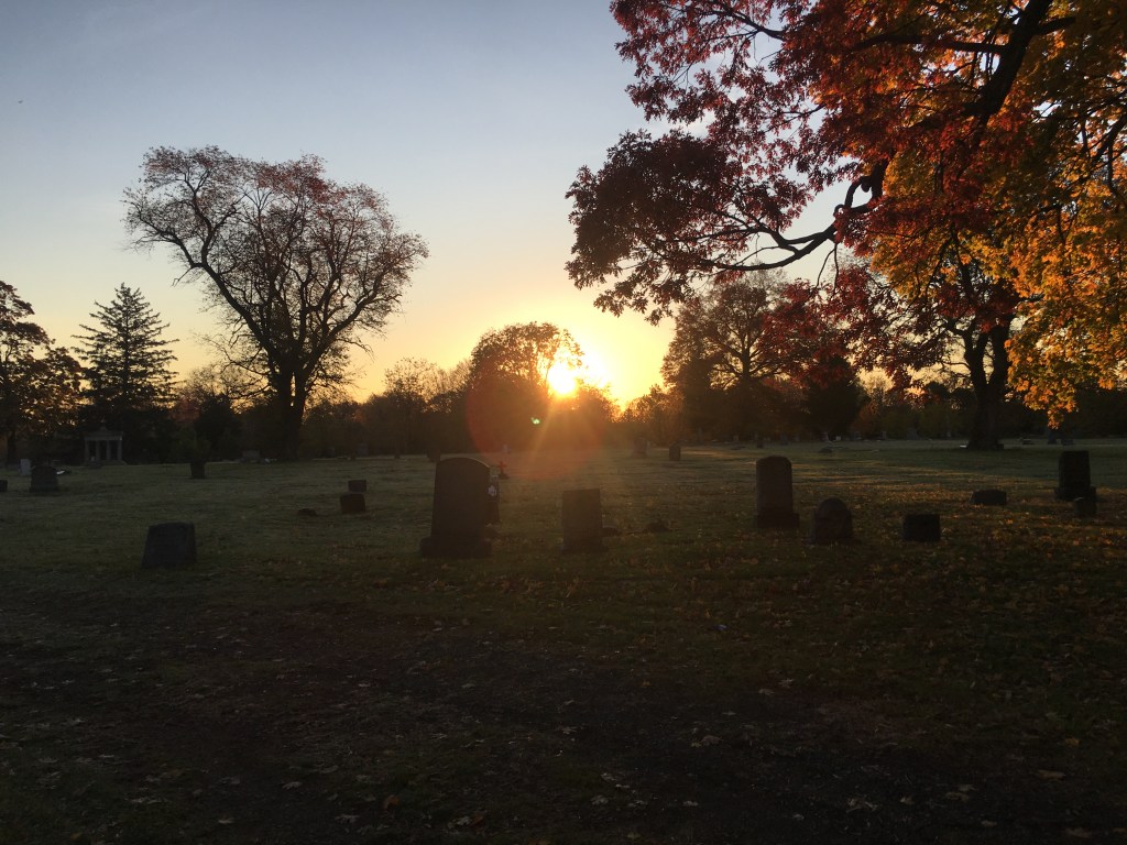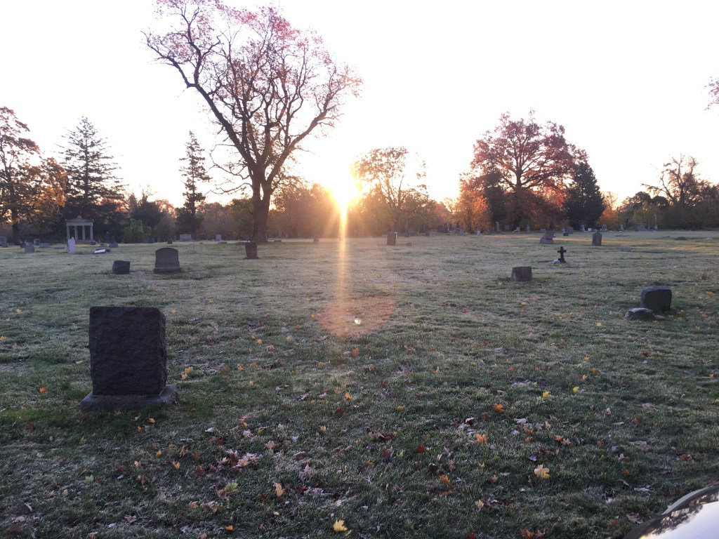 Looking in from the South 10th Street gate at sunrise on a work day. Within a few moments the sunrise brightened the area and you can see frost on the ground in the second photo.