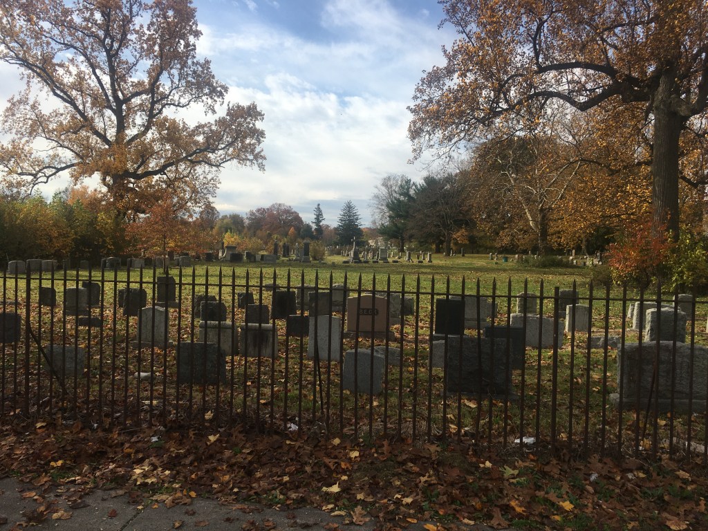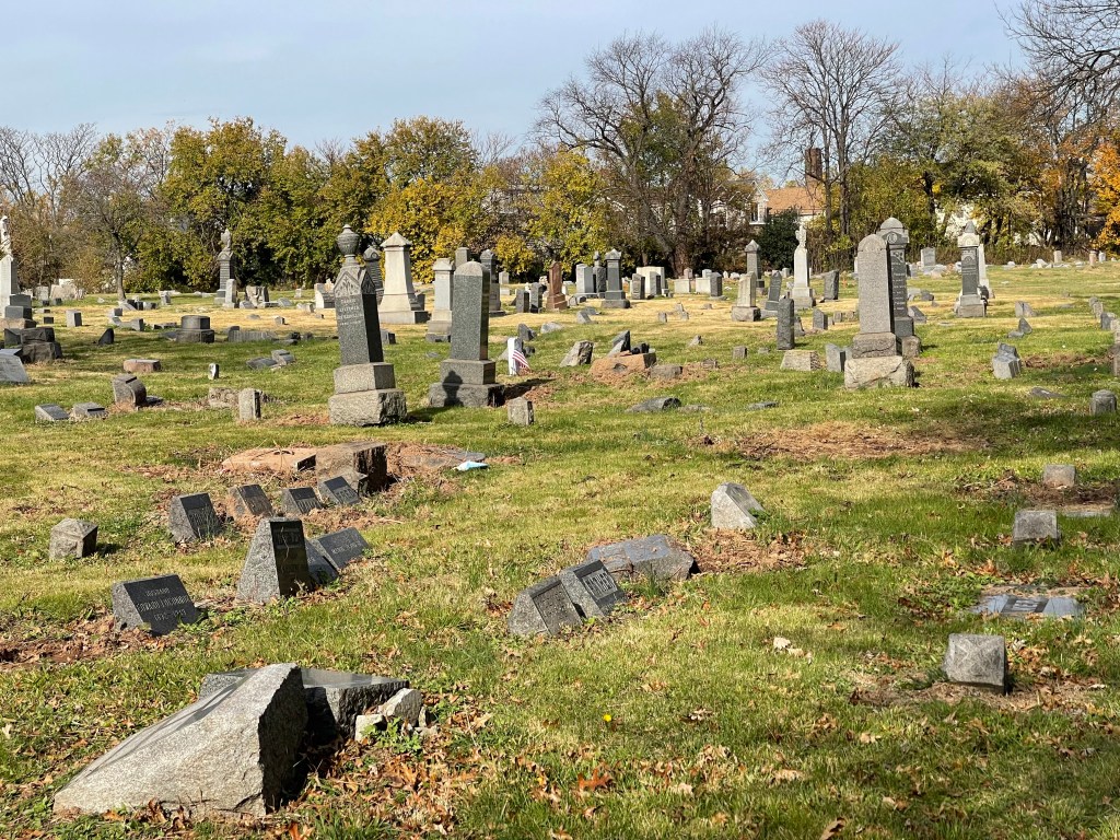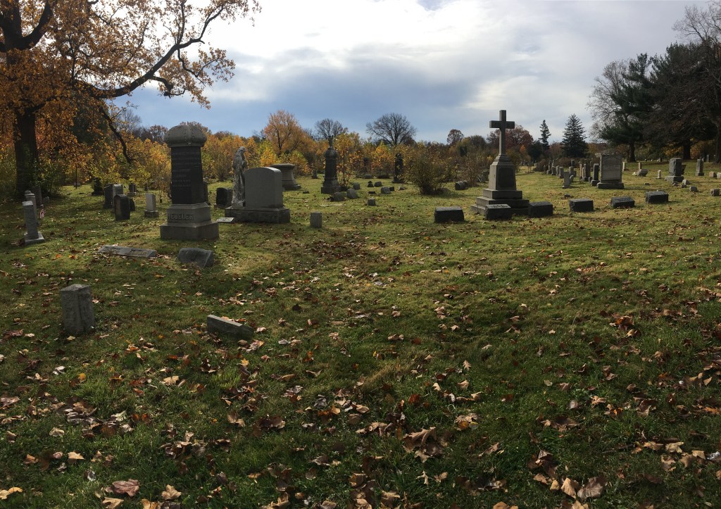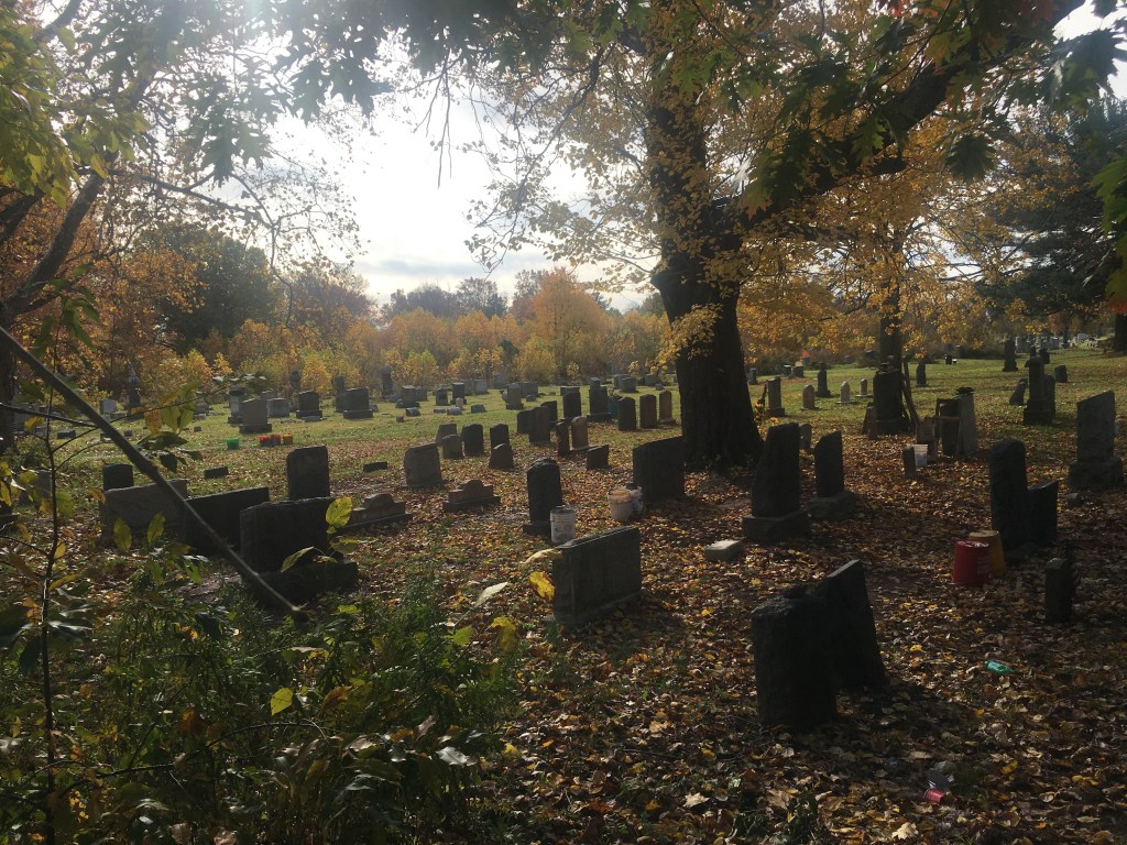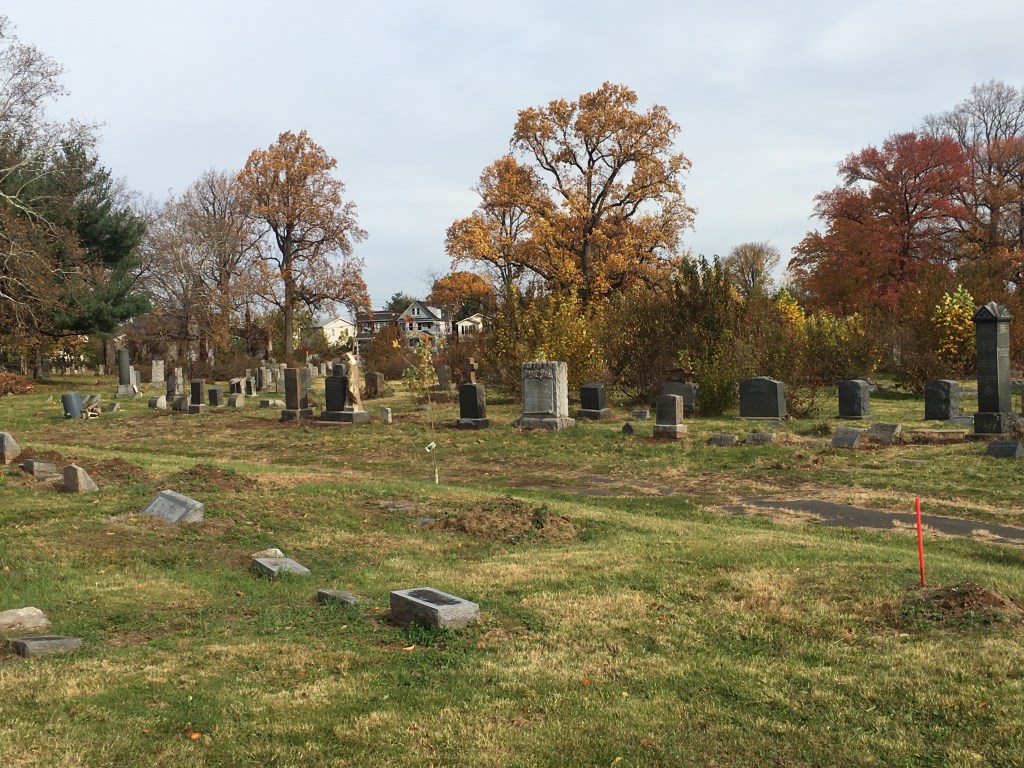 The following photos show our final cut for the season in the maintained area. In sections 1, Q, Y and Blocks 1 & 2 the current work of pulling vegetation, leveling depressions and resetting headstones can be seen in various stages of progress including finished. This restoration process has become repetitious and time consuming, but progress can be seen.