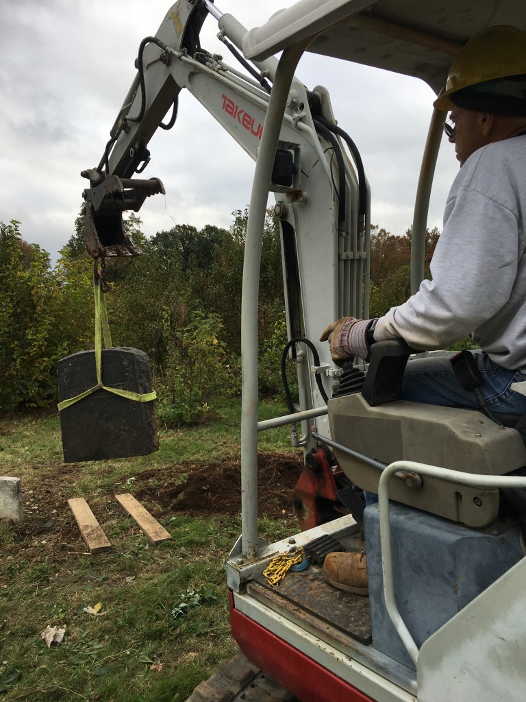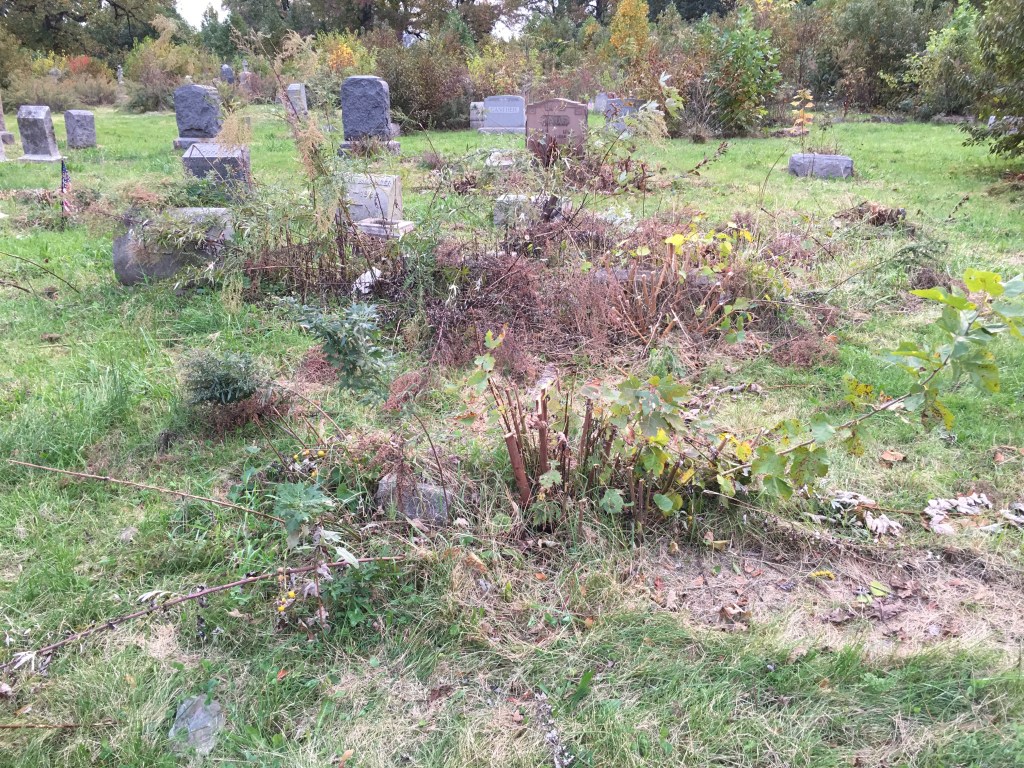Working in Section “Y” on this day heavy monuments were reset, buried stones uncovered, brush removed, and stumps pulled. This is a catch-up post.