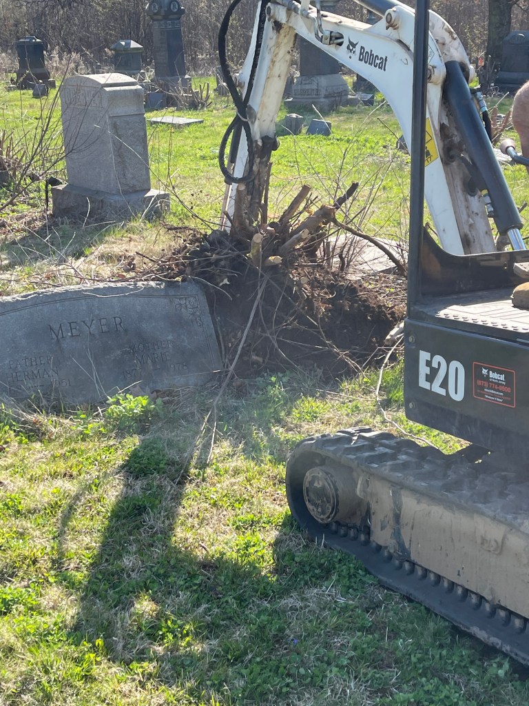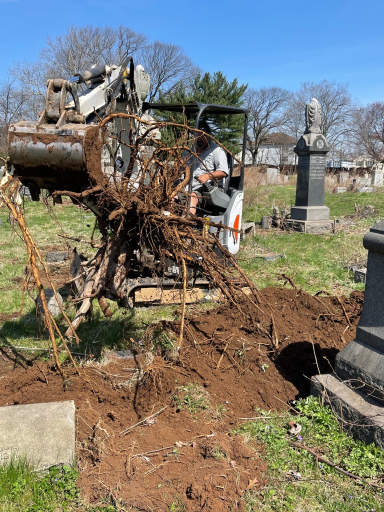 The pulling of stumps in Section Y is a continuing process. Completely pulling the weed tree stump is the only way we have found that ends the return growth of a weed tree. This removal is also the most difficult step in the restoration process. Today we rented a 40cy dumpster from “Cheap Disposal” and filled it with the three piles of stockpiled stumps from previous day’s work plus the removals done this day. The stumps were packed down to insure maximum capacity in the dumpster. This clearing work is funded by donations.
