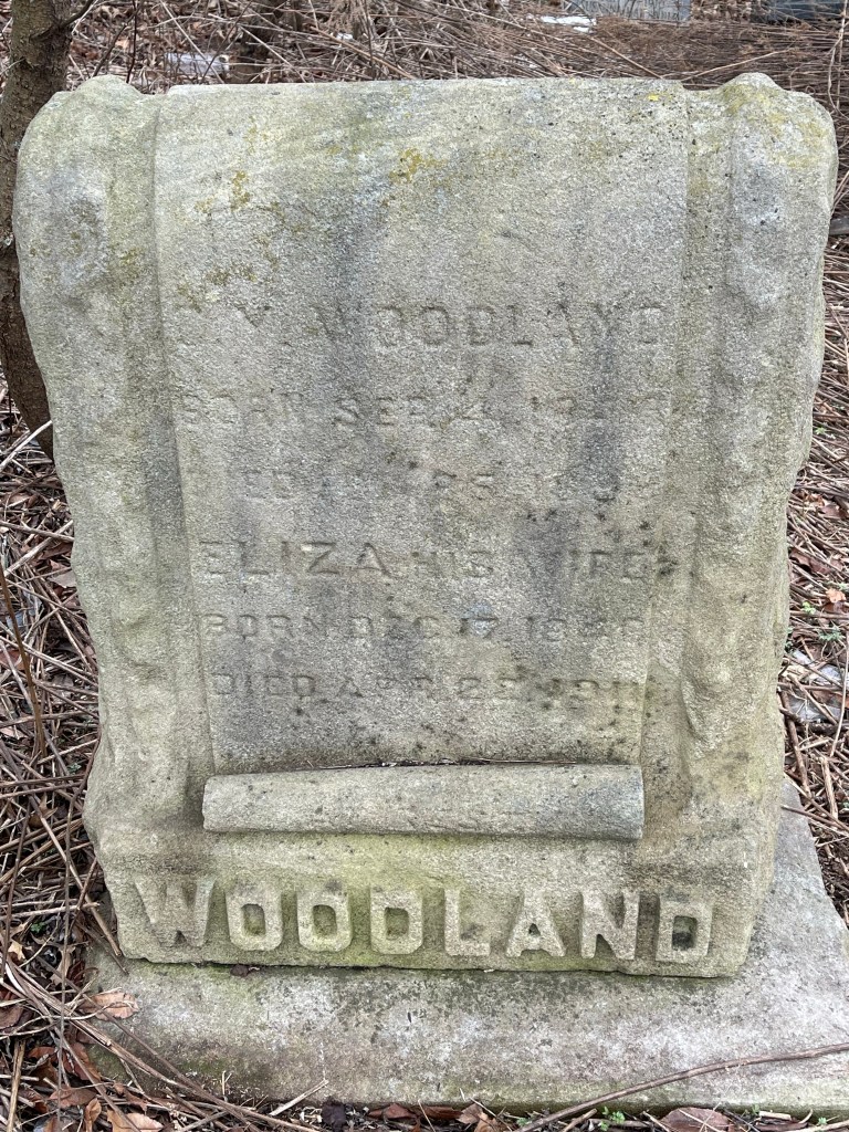 As we continue to expand the fringes of the maintained area, we were pleasantly surprised when we uncovered this monument located in Section 69 Row 113 Graves 3 & 4 along Maple Ave. O.Y. Woodland, Eliza Wormand Woodland and Nelli Florence Woodland are buried in Grave 3. Clara Elizabeth Woodland, Frederick Charles Woodland and William Woodland are buried in Grave 4. Reading the many headstones can make for a fascinating and enthralling day.