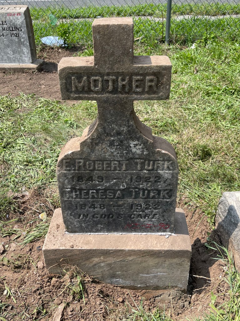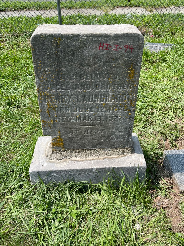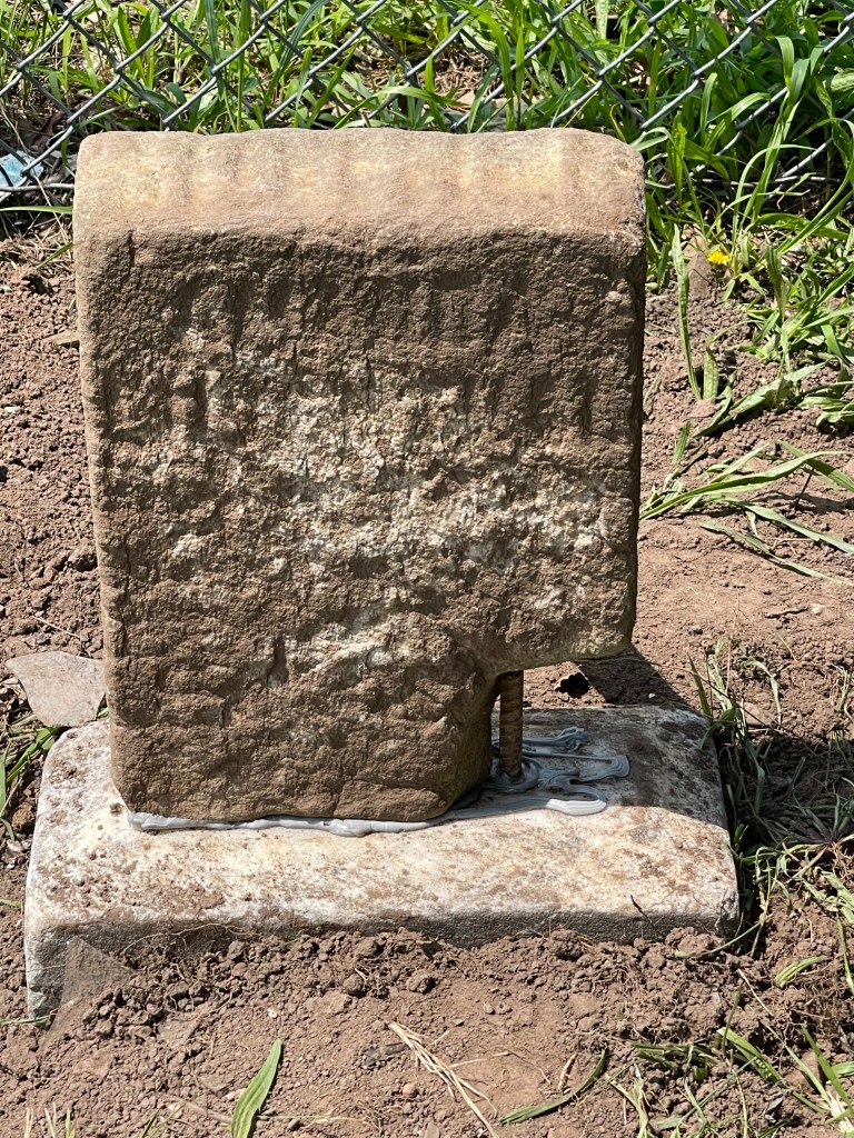 Moving along today the headstones resetting operations proceeded down Rows H and I. Foundations were uncovered and the surface levelled with concrete and shims when needed. The base of the stone was set in place and the stone itself reset. Mortar was used when the surfaces were rough and stone adhesive when the surfaces were smooth as in marble. In a follow up operation, a concrete collar will be added when the stone is broken at the bottom or if additional support is needed. Also, the base area will be levelled with soil in a follow up operation. The resetting of headstones is funded with $50 donation per headstone. Thank You.