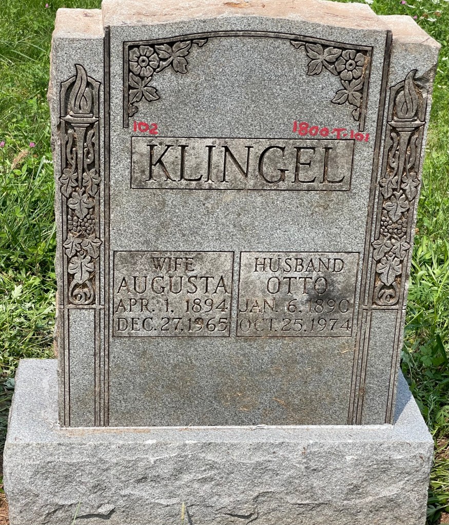 Moving along more headstones were reset in Section 1800 as part of today’s work. Foundations were uncovered and the surface leveled with concrete and shims when needed. The base of the stone was set in place and cemented. Then the stone was reset on the base. Mortar was used when the surfaces were rough and stone adhesive when the surfaces were smooth as in marble. In a follow up operation, a concrete collar was added when the stone needed additional support. Also going forward, the ground area will be leveled with soil and grass seeded in a follow up operation. The resetting of the Klingel headstones, which required the use of a crane, is funded with $100 in donations. Thank You.