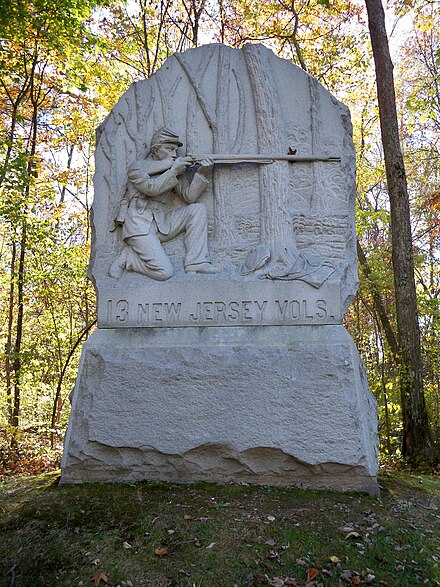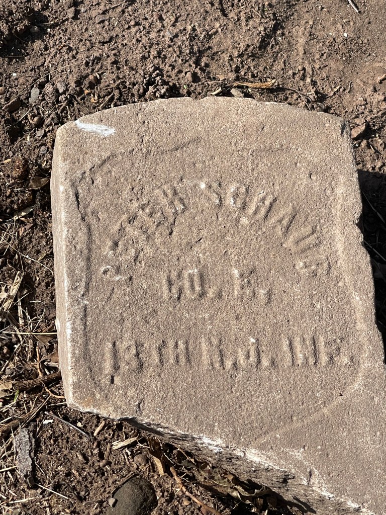 Although no specific military information about Peter Schaub could be found this is what we know: The 13th NJ Infantry was recruited in Essex, Hudson and Passaic Counties with the largest number of recruits from Newark. It was formed in 1862 as one of the first (3) three-year enlistment units. The regiment went into its first battle at Antietam with only one month of training. They went on to fight at Chancellorsville, Gettysburg, Atlanta and the March to the sea. The broken headstone was recently found buried during a site cleanup operation in Section 1800. The monument pictured is to the 13th NJ Inf at Gettysburg. Anyone with additional information about this post please reach us through our website contact. This post was researched by Wesley Shelton.