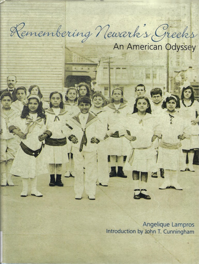 Recently Greek decedents have inquired about their Greek ancestors buried in Sections 1000 and 1400 at Woodland Cemetery and have organized workdays to clean up these areas starting with Section 1400. While unconfirmed these two sections appear to have been chosen by the parishes of St. Nicholas Greek Orthodox Church and St. Demetrios Greek Orthodox Church. Both parishes are from an earlier time in Newark. This book which tells a great visual story of Greeks in Newark is available on loan from West Orange NJ Library. The author Angelique Lampros has family buried in WC. Below are pictures highlighting the book which also contains many, many more individual portrait and family pictures.