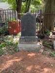 This heavy stone for the Bauer family located in Section T Plot 197 was found on the ground lying face up together with the “Bauer” base off its foundation. The remaining base was evaluated and found level and not in need of any additional work. Next the “Bauer” monument base was reinstalled and the stone set on top. Cemetery records…